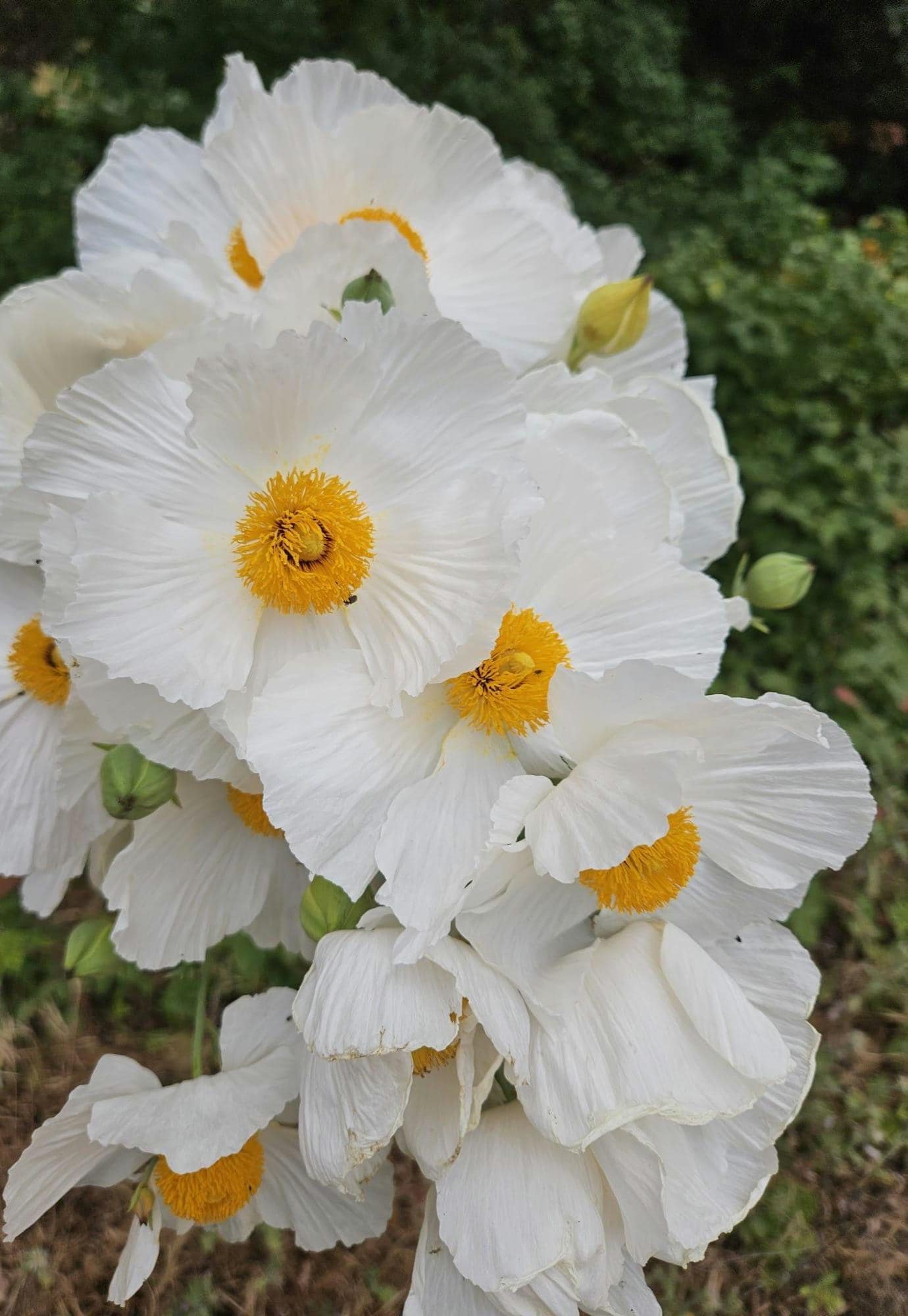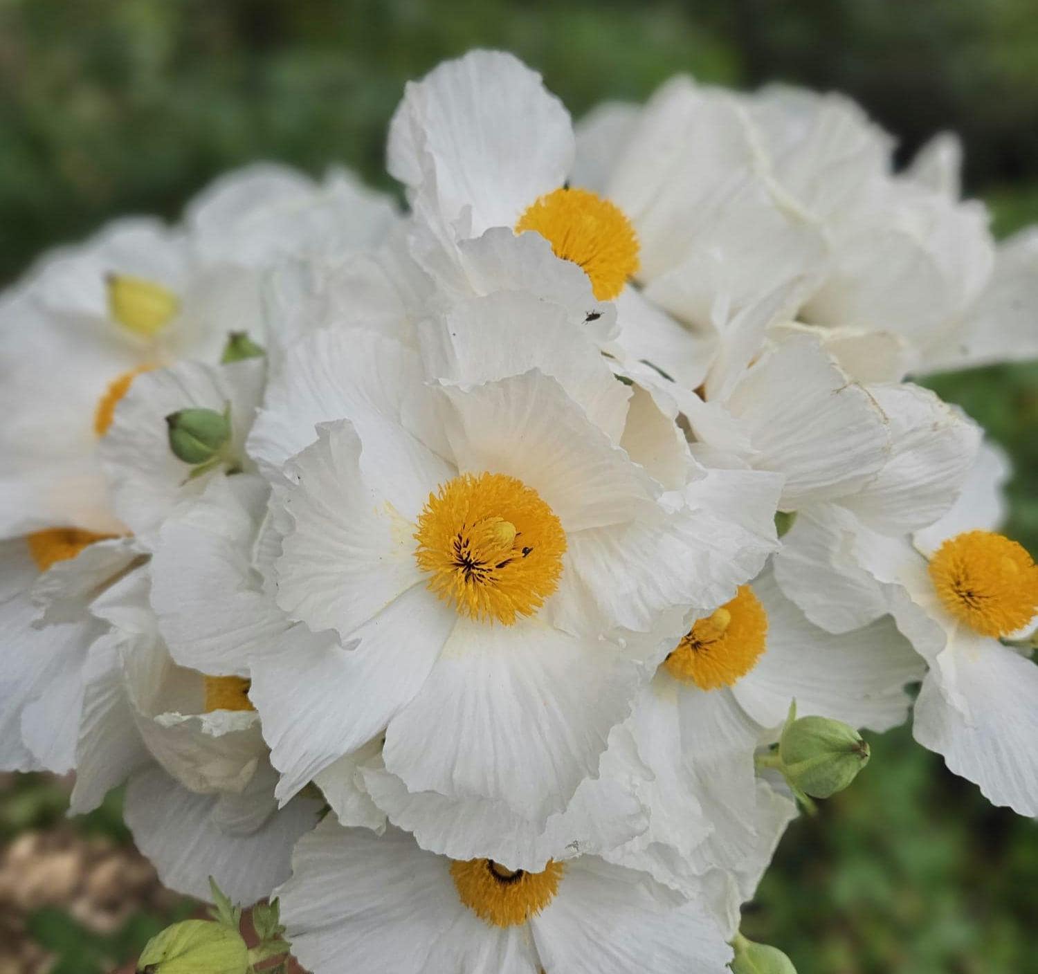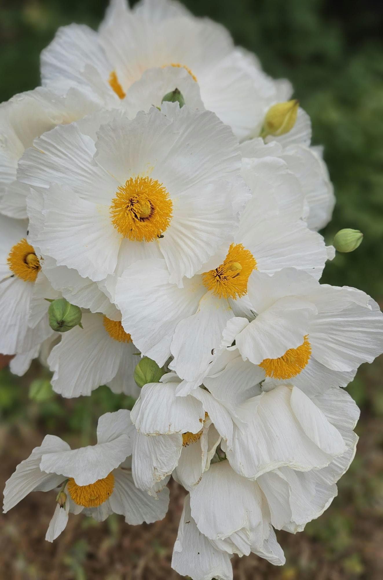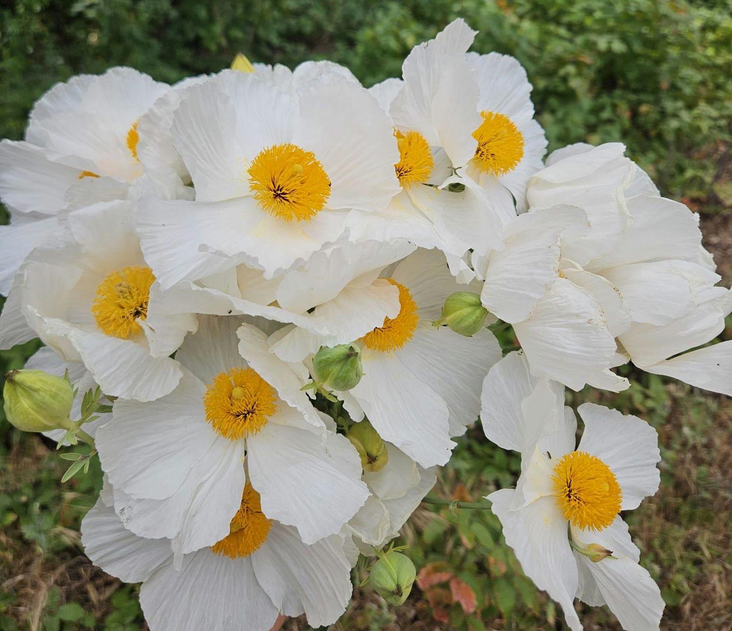 About Coulter's Matilija Poppy (Romneya coulteri)Romneya coulteri (Coulter's Matilija poppy) is species of flowering plant in the poppy family. This poppy is native to southern California and Baja California, where it grows in dry canyons in chaparral and coastal sage scrub plant communities, sometimes in areas recently burned.It is a popular ornamental plant, kept for its large, showy flowers. This is a shrub which may exceed two meters in height, its woody stem growing from a network of rhizomes. The gray-green, waxy-textured leaves are each divided into a few lance-shaped lobes, the blades growing up to 20 centimeters long. The inflorescence is a large, solitary flower with six crinkly white petals each up to 10 centimeters long. At the center of the flower is a cluster of many yellow stamens. The fruit is a bristly capsule 3 or 4 centimeters long containing many tiny seeds. This plant bears the largest flowers of any species native to California, rivaled only by Hibiscus lasiocarpos. It was nominated for the honor of California state flower in 1890, but the California poppy won the title in a landslide. A closely related species, Romneya trichocalyx, has more spiny sepals on the flower buds and overall smaller plant and flowers.