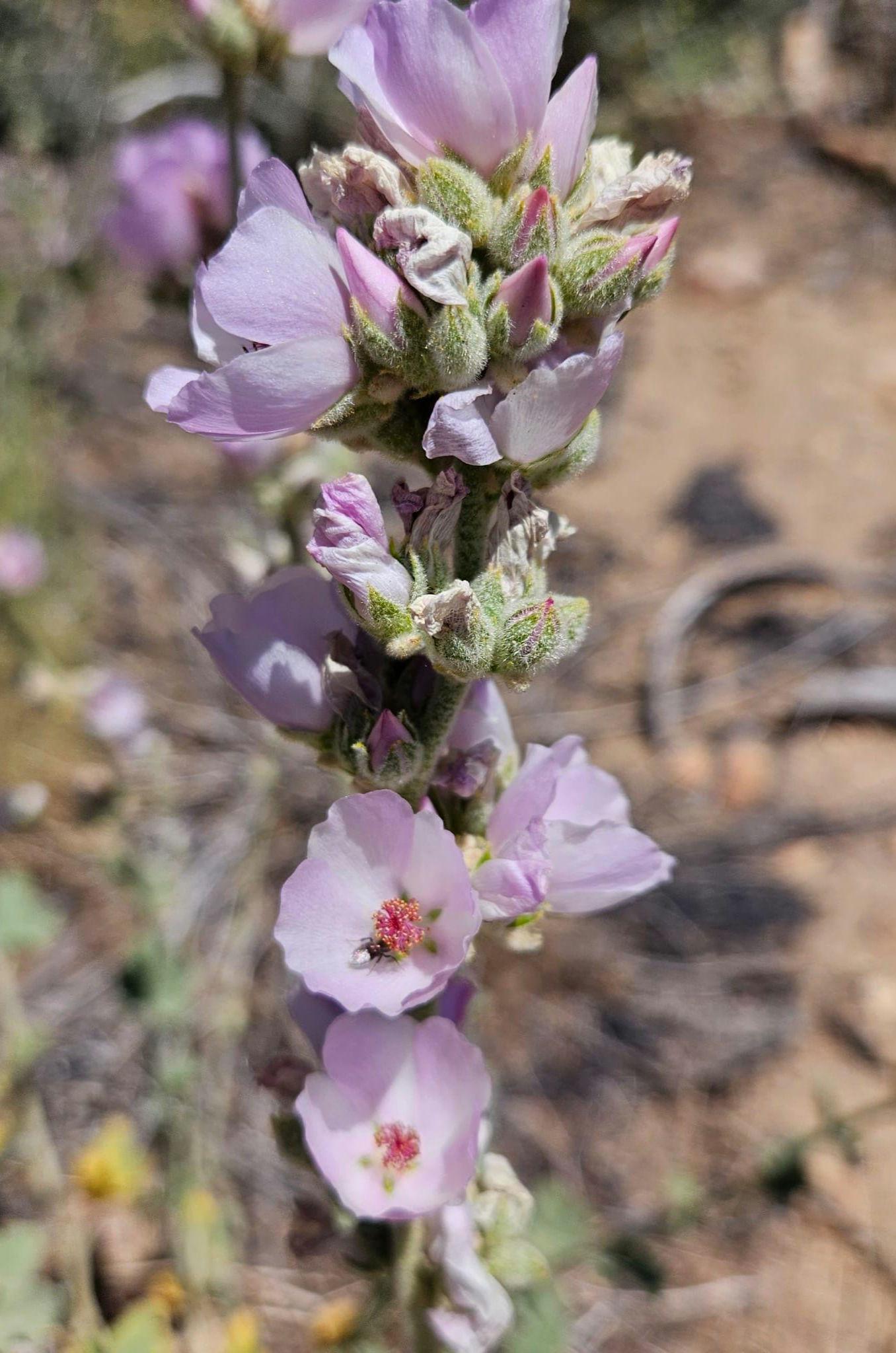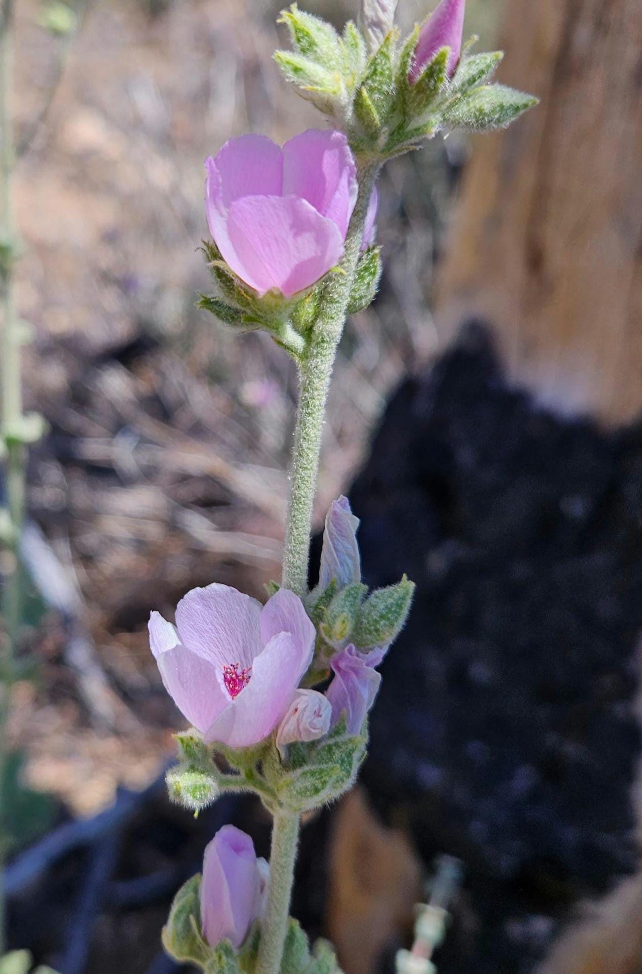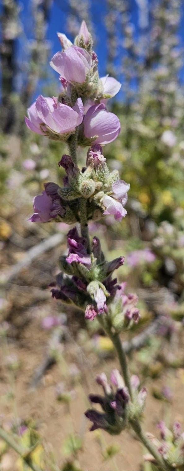 Chaparral Mallow is an attractive evergreen shrub with pale pink flowers that grow on branching, elongated clusters. In full bloom, one plant can have thousands of flowers. It is attractive to butterflies, hummingbirds, and other small birds.